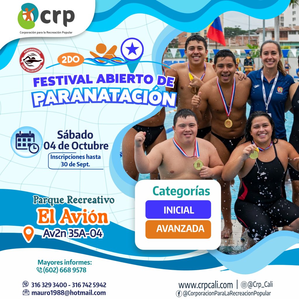 Este sábado 4 de octubre, en el parque recreativo El Avión, se realizará el segundo Festival Abierto de Paranatación que convoca a deportistas de las categorías iniciación y avanzados, a esta fiesta del deporte inclusivo. La Corporación para la Recreación Popular CRP, con el aval de la Liga Vallecaucana de Paranatación, organiza el festival, que […]