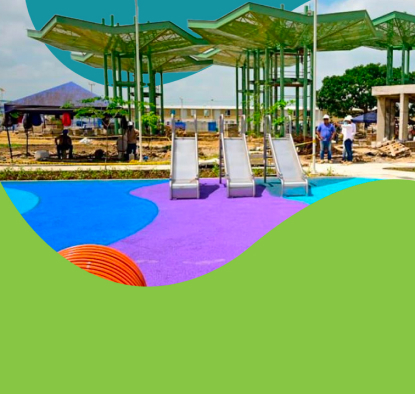 El parque está separado en cinco zonas. La zona número uno consistente en el acceso principal del parque se presenta hacia la comunidad con seis grandes parasoles metálicos. Este espacio está dispuesto para albergar a la comunidad en su esparcimiento cotidiano y la vez servir como un escenario para eventos, ferias, integraciones. Al interior del parque se cuenta con dos áreas destinadas para juegos infantiles, un espacio para el adulto mayor y un oasis de palmeras y arena de playa